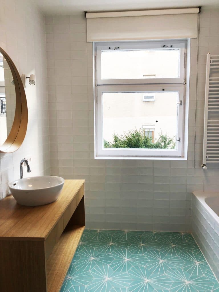 handgefertigte Zementfliesen im Einsatz