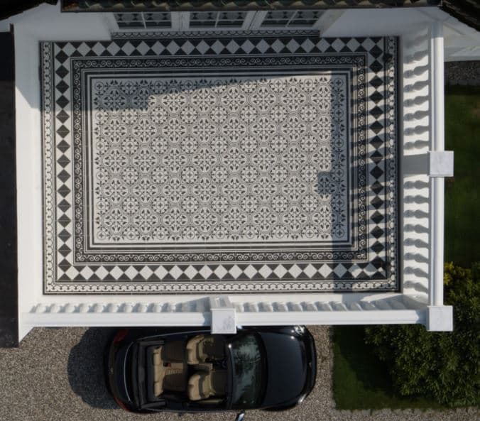 „Jede Fliese wird nach traditioneller Technologie vollständig von Hand und einzeln hergestellt. Kleinere Farbabweichungen und Oberflächenunregelmäßigkeiten resultieren aus dem Herstellungsprozess und tragen zum einzigartigen, rustikalen Charakter der echten Zementfliesen bei.